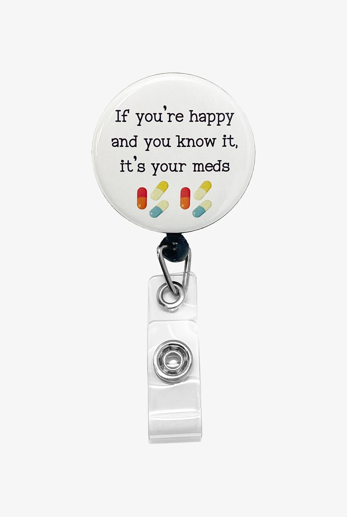 Hiddles If You’re Happy And You Know It Retractable ID Badge Holder attaches securely to your uniform and the taut retractable cord lets you swipe your ID with ease.Â